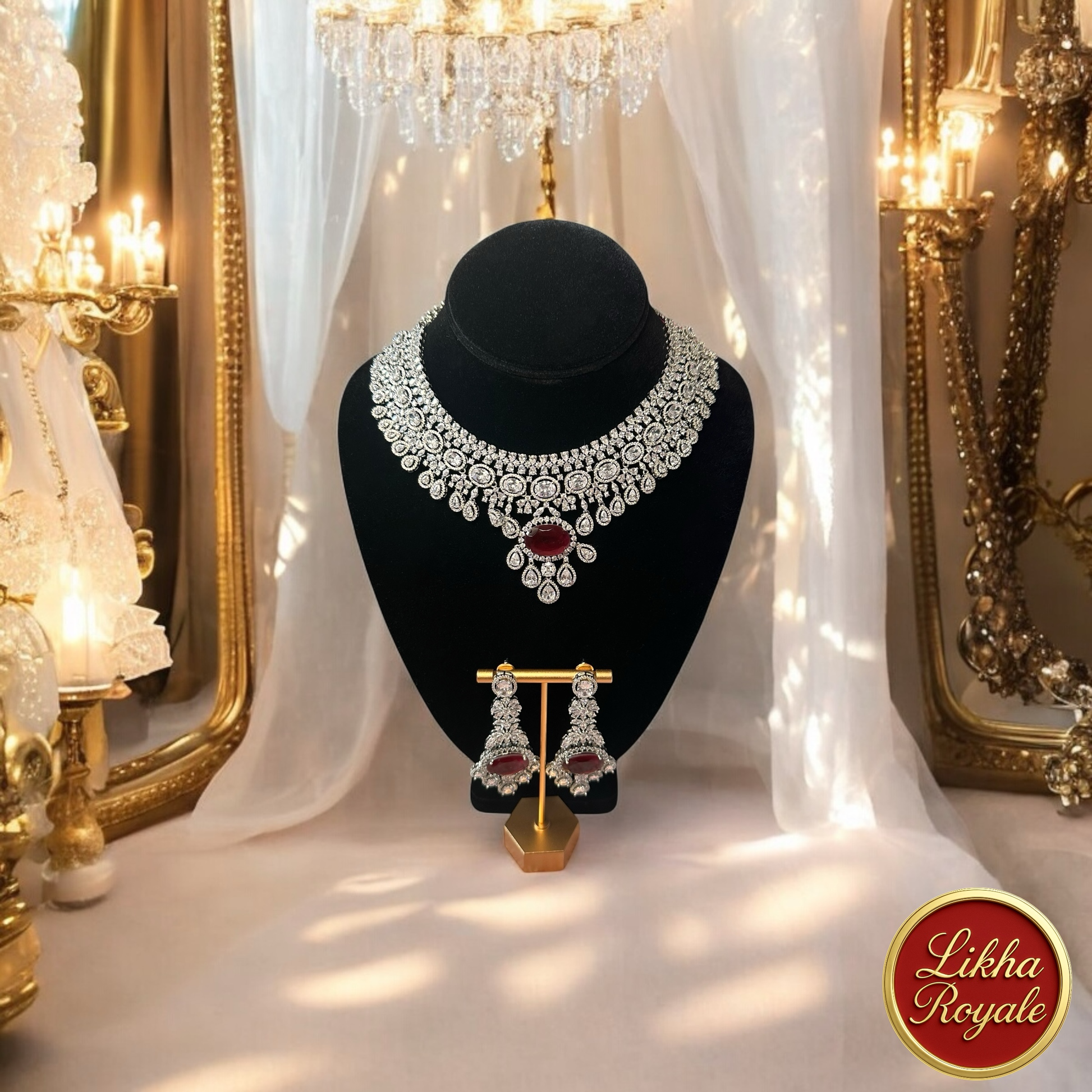 A breathtaking symphony of fashion diamond sparkle and grandeur, this set radiates regal elegance with its intricate craftsmanship and statement centerpiece - fit for royalty.